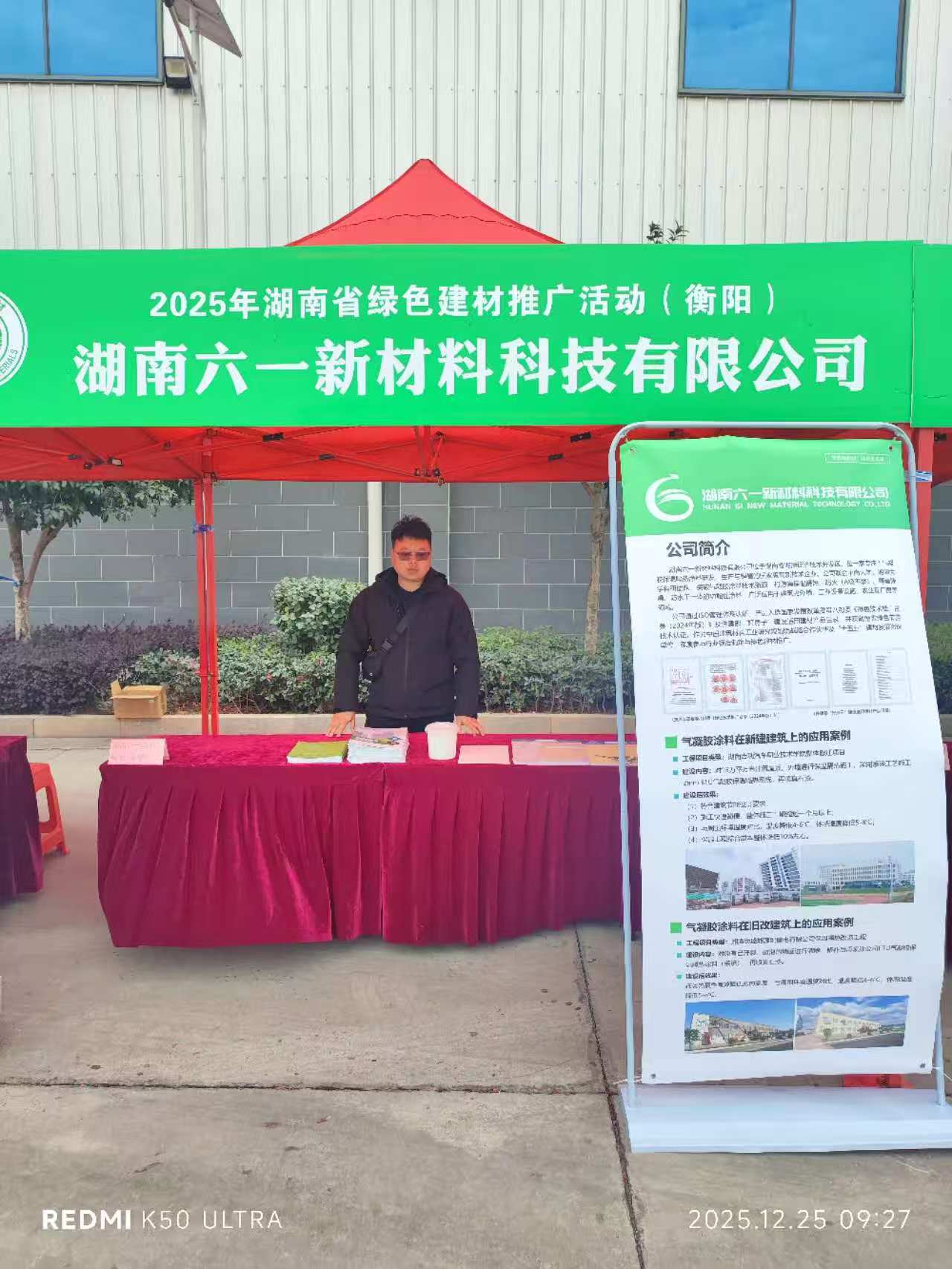 2025年12月25日,2025年湖南省绿色建材推广活动在衡阳隆重举办。湖南六一新材料科技有限公司(以下简称“六一新材”)携核心绿色建材产品参展。本次活动以“绿色建材进万家 美好生活共创建”为主题,由湖南省工业和信息化厅牵头主办,衡阳市住建局承办,旨在构建绿色建材供需对接体系,助推全省绿色建材产业转型升级。